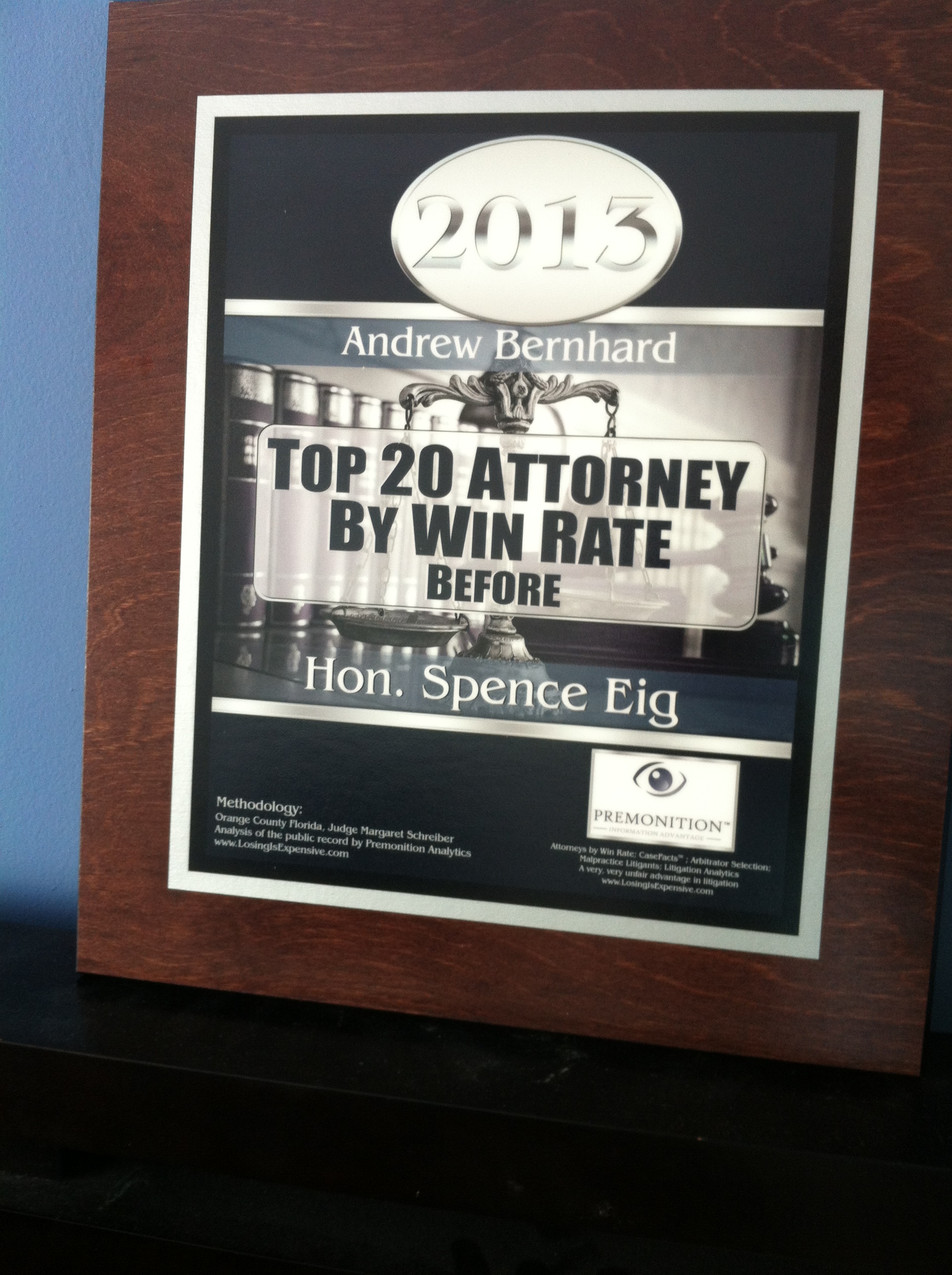 Andrew Bernhard receives Top 20 by win rate in Miami court