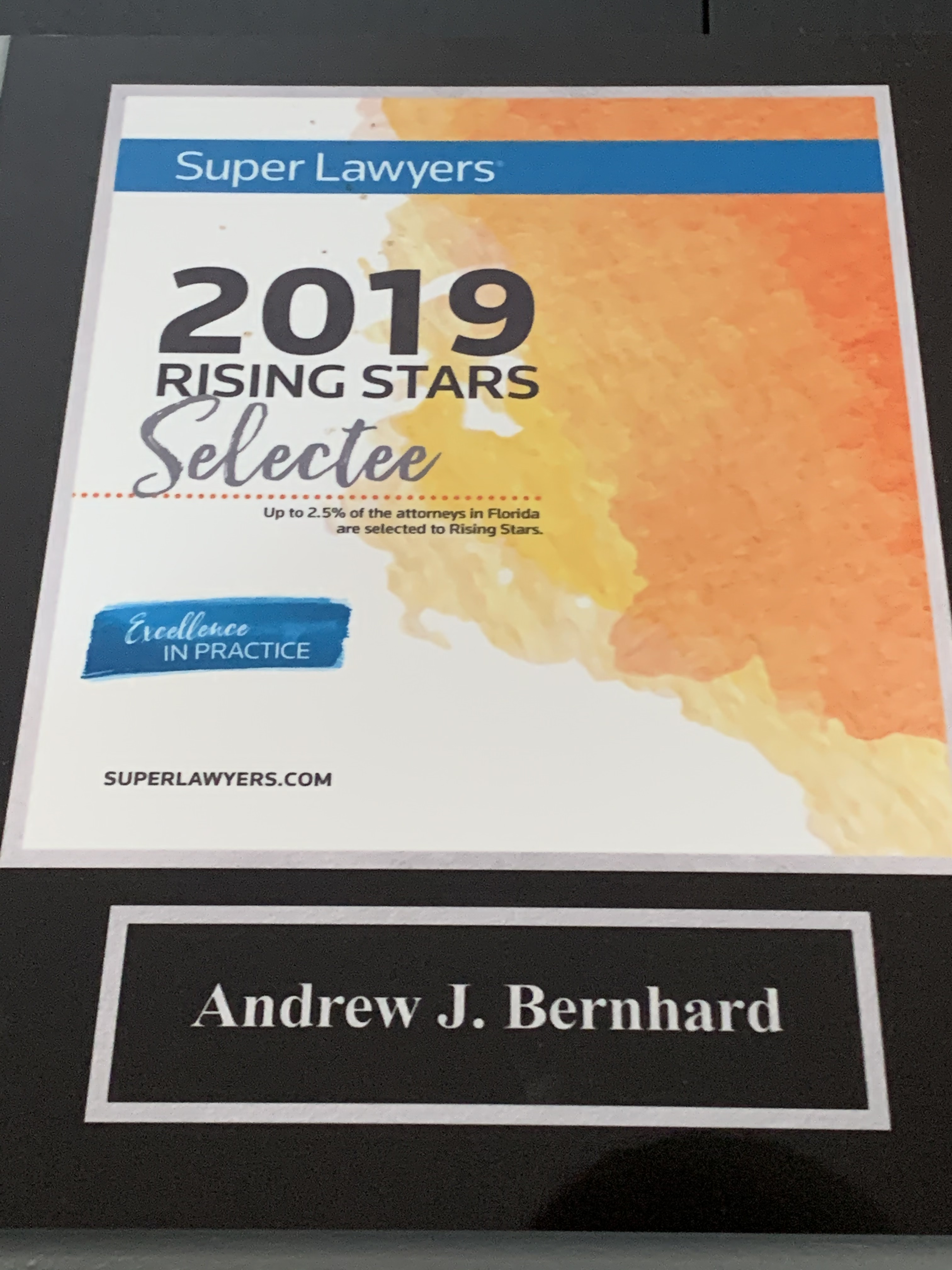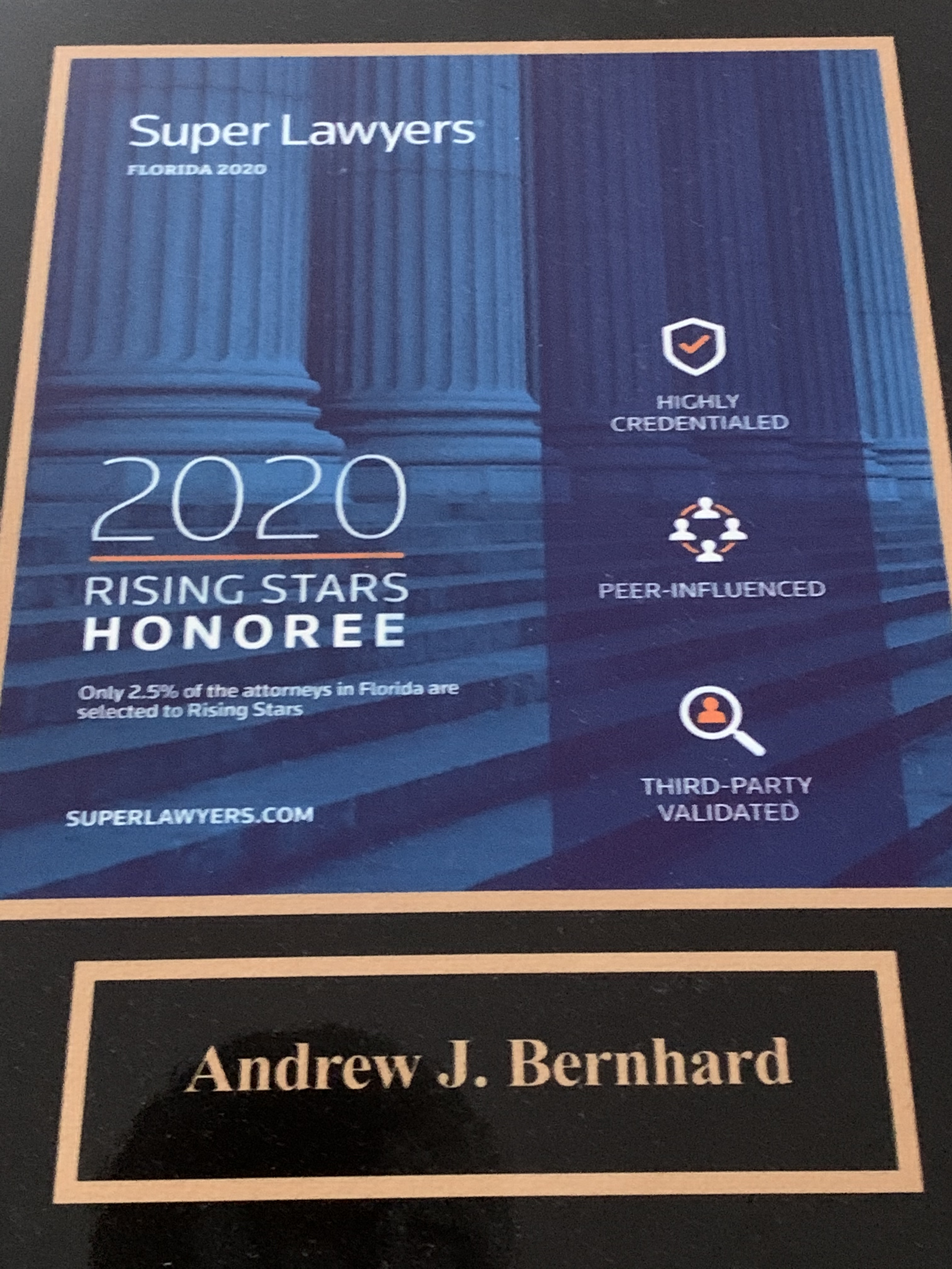 Miami attorney Andrew Bernhard has been selected by Super Lawyers Magazine as a Rising Star for the 5th consecutive year.